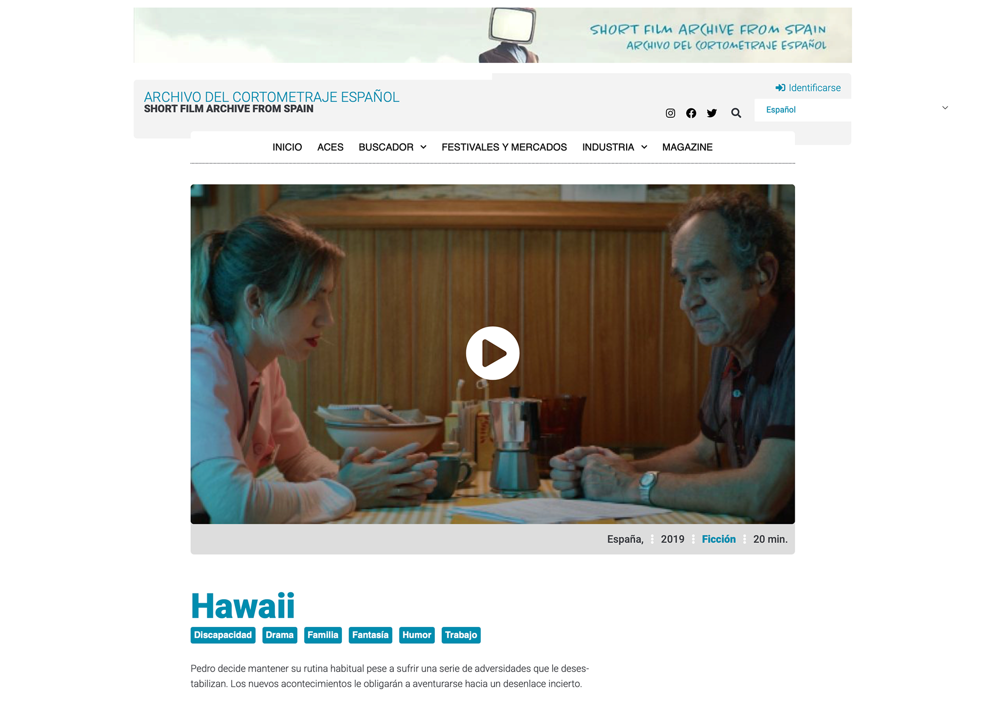 Hawaii forma parte en el catálogo del Archivo del cortometraje español Short film archive from Spain.