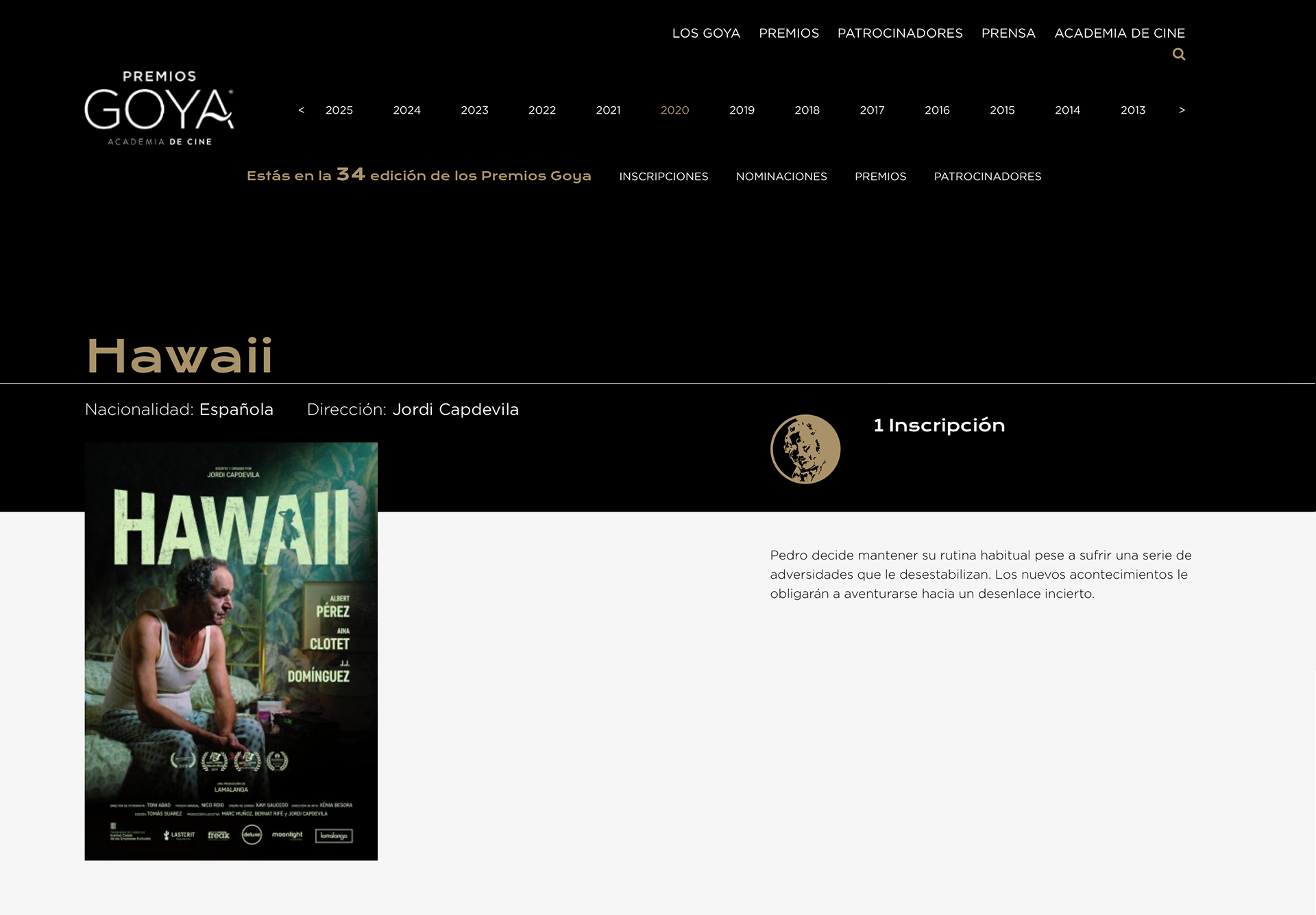 El Cortometraje Hawaii de Jordi Capdevila es seleccionado como candidato a los Premios Goya 2020.